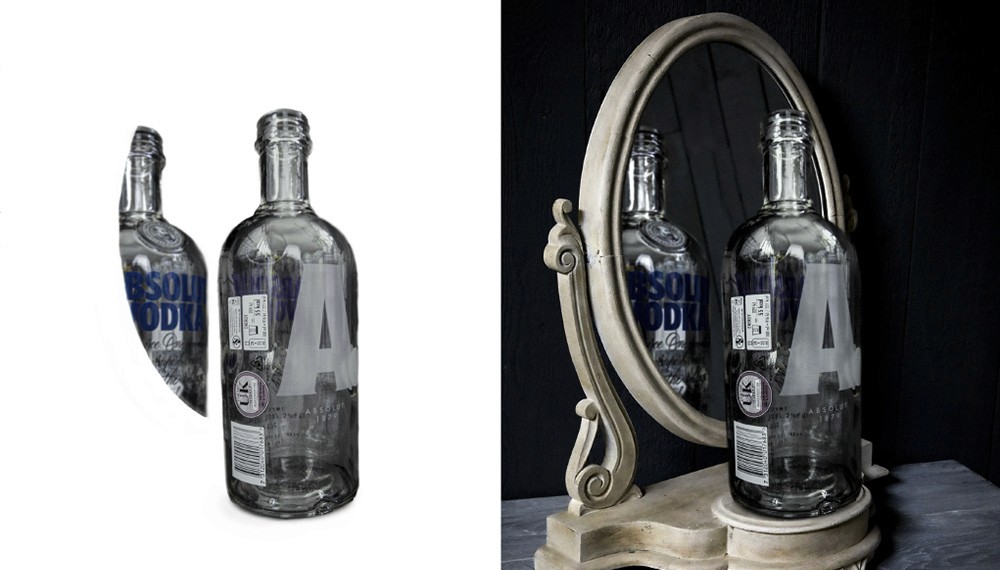 Develop a poster for an Absolut Vodka campaign centered around the concept of narcissism, utilizing visual elements to convey the theme.